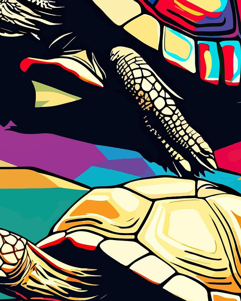 Celebrate the beauty of Mediterranean tortoises with this vibrant pop art illustration. Each tortoise shell is adorned with an explosion of colors and patterns, transforming these tranquil creatures into lively, eye-catching subjects. The bold use of hues and geometric designs creates a mesmerizing visual contrast, highlighting the tortoises’ natural elegance in a contemporary context. Ideal for art enthusiasts who appreciate bold and innovative designs, this piece is sure to add a touch of exotic charm and modern sophistication to any space.