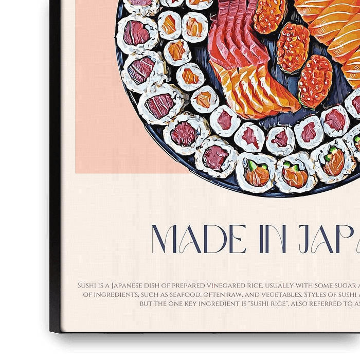 Buy this modern artwork Colorful Sushi Delight by Nazma Khokhar on canvas, ArtFrame, poster and wallpaper, printed on demand in high quality.