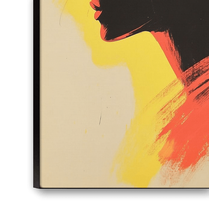 Details: woman, portrait, abstract, yellow, red, blue, art, expressive, profile, dynamic