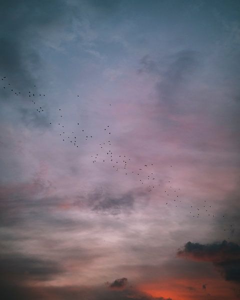 Buy this bird art Colorful cloud field (Pink, orange, blue) by Joren van den Bos on canvas, ArtFrame, poster and wallpaper, printed on demand in high quality.