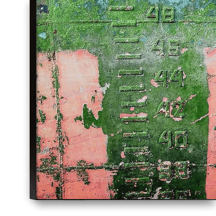 Aging, decay and corrosion create a feast of shapes and hues on this old steel hull. The paint in different colors peels off and is eaten away by rust spots. Weld seams provide a fascinating interplay of lines. Scratches and other damage also tell their own story, just like the algae . The numbers and stripes of the draft mark on the…