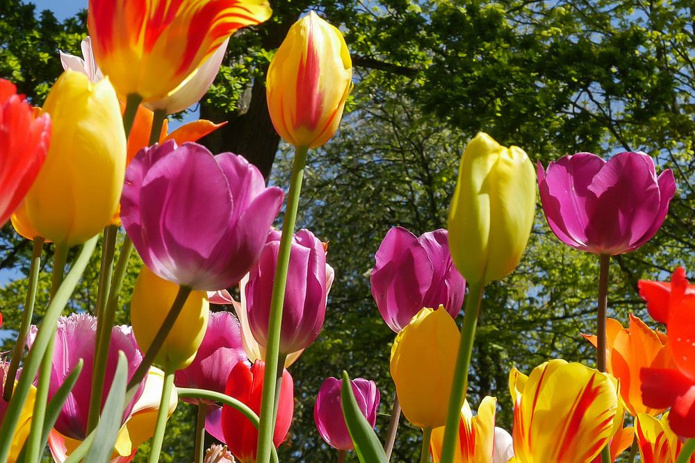 Field of colorfull tulips in the Keukenhof, Lisse, south holland, the Netherlands