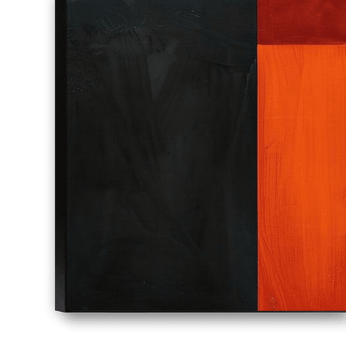 Areas of colour - This abstract painting features a series of vertical colourful bands that exhibit a vibrant palette of orange, red, blue, and dark earth tones, giving it a dynamic and modern look.