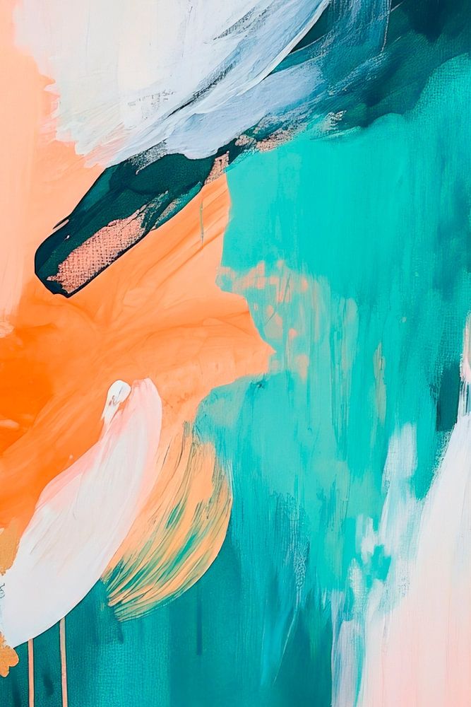 Gentle colour transitions from aquatic blue to warm coral create a harmonious mood. The dynamic brushstrokes and subtle drips add vibrancy to the work. Perfect in a living room, where it stimulates conversation and creates a relaxed atmosphere. A work of art that invites you to dream and linger.