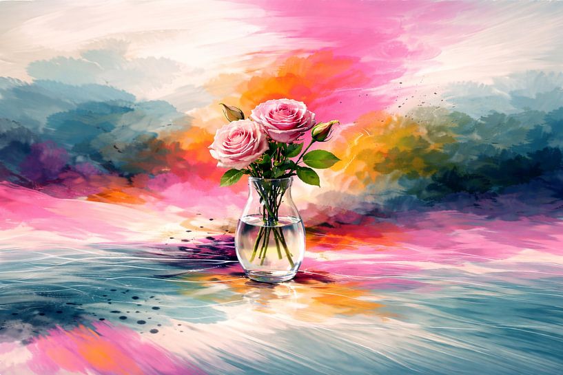 This series of paintings was created as a modern, abstract still life work. - A classic motif that is deliberately reinterpreted using an expressive, colourful technique.