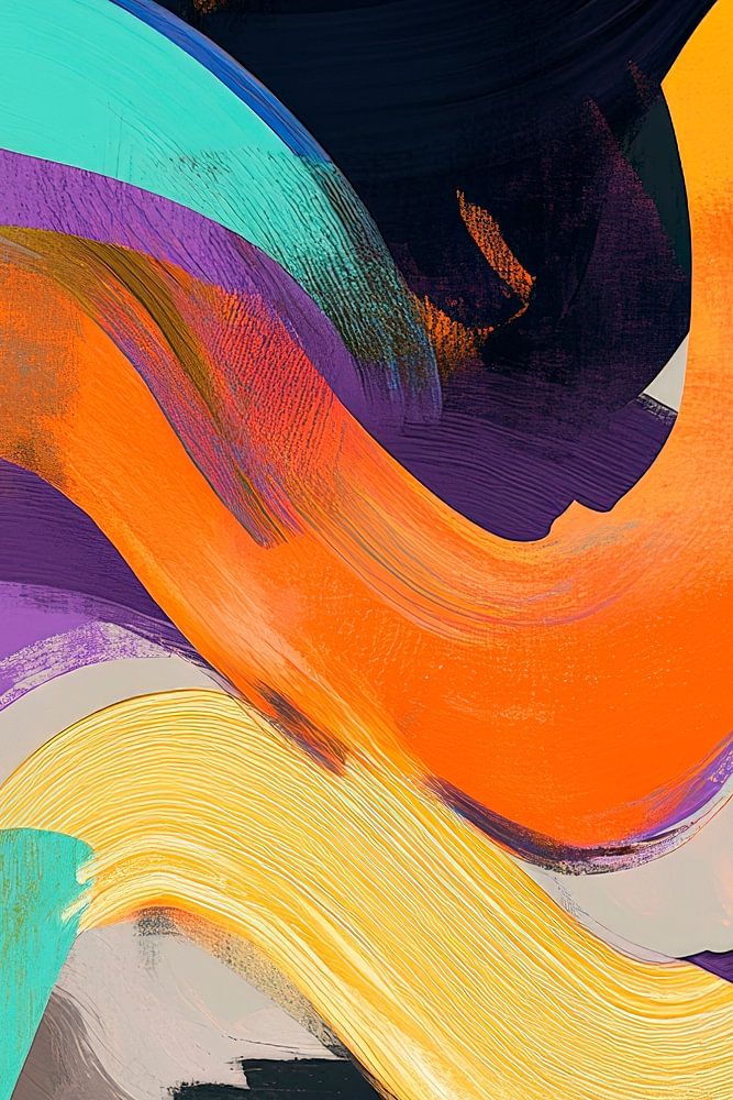 A dynamic interplay of bold, flowing colours unfolds and captivates the viewer. The harmonious combination of vibrant oranges, soft turquoises and deep purples energises and inspires creativity. Ideal for a modern living room or an inspiring office, this work of art creates an inviting, creative atmosphere.