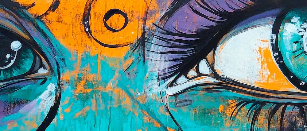 A captivating play of vibrant colours unfolds, where bright blue eyes full of curiosity and mystery emerge from a colourful background. The curved lines and spiralling accents give the artwork a dynamic energy. Perfect for the living room, it brings an inspiring atmosphere and stimulates conversation.