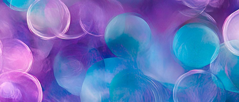 A fascinating interplay of vibrant violet and cool turquoise tones awakens the senses. Soft, blurred circles lend the room a dreamy atmosphere and invite you to relax. Ideal for the bedroom, where peace and inspiration merge harmoniously. This work of art is a visual experience that casts a spell over every viewer.