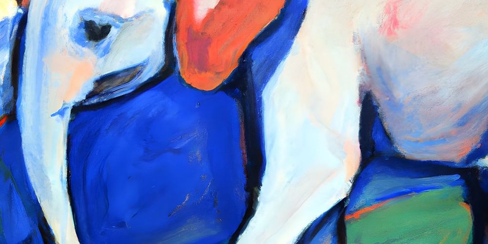 Digital art composition of a colourful baby elephant in nature in the style of an oil painting by Henri Matisse. The vivid colours will delight your mind every day anew.