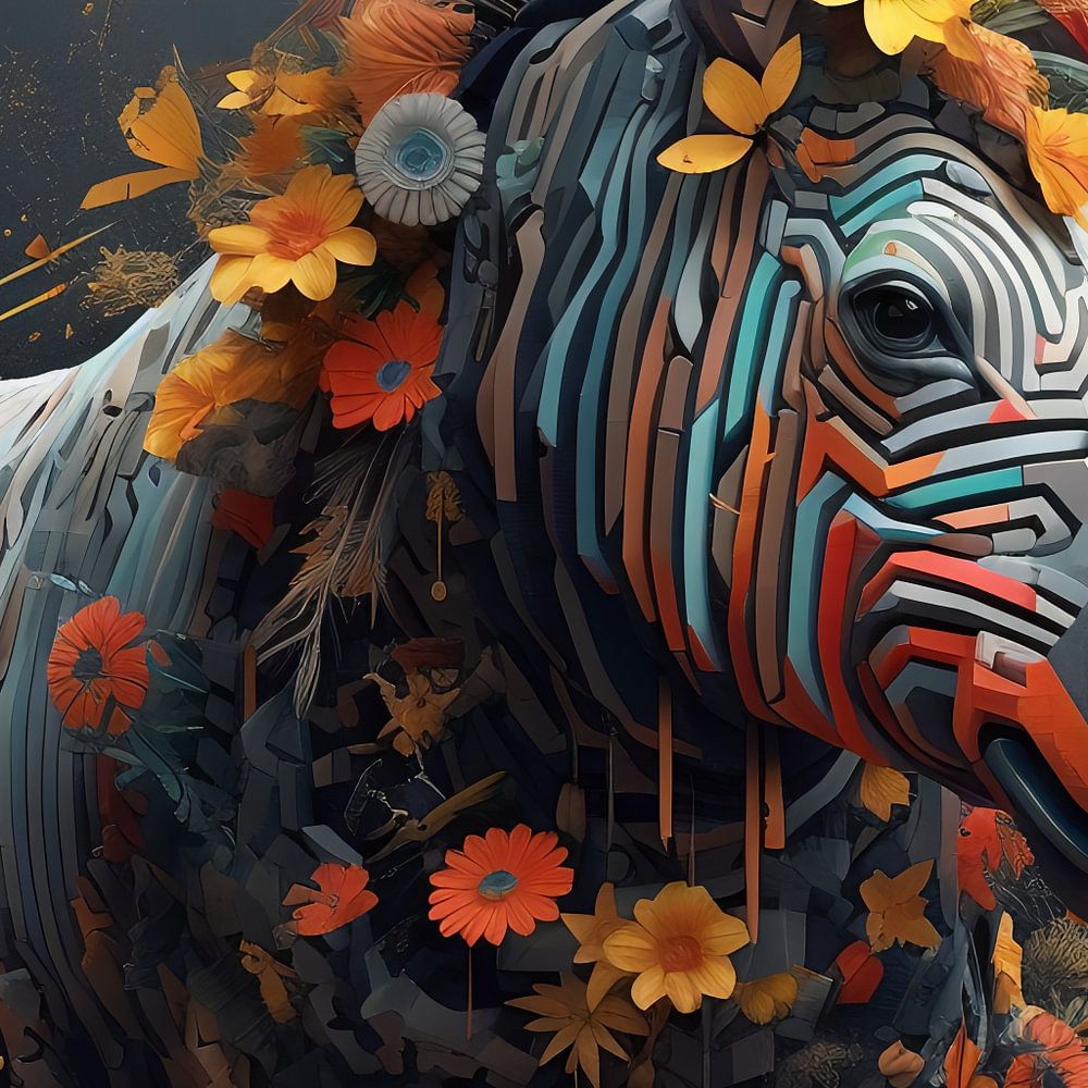 The abstract artwork shows a pony in a colourful and lively depiction. The colour palette includes a wide range of intense and bright colours that harmonise with each other and give the painting an energetic atmosphere. The shapes and lines are highly stylised and abstract, retaining elements of pony depiction but without aiming for a realistic rendering. The technique used for the painting is precise and detail-oriented. Each stroke and application of paint seems to be deliberately and purposefully placed, giving the painting a certain technical finesse. All in all, the artwork creates a lively and playful image of the pony that fascinates the viewer with its abstract and colourful depiction.