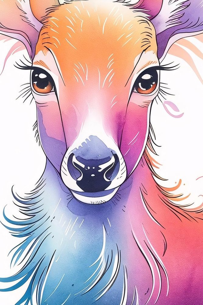 This eye-catching design is a colourful digital illustration of a deer. With flowing transitions between purple, pink, blue and orange, the design grabs immediate attention. It combines graceful details with an abstract approach, creating a modern and dynamic look. The soft lines and playful shapes give the image an almost dreamlike feel, perfect for those who love vibrant, expressive art. This piece is particularly suitable for a bedroom or office where you want to add some colour and energy. It gives a room a lively and creative feel, and can serve as an inspiring focal point.