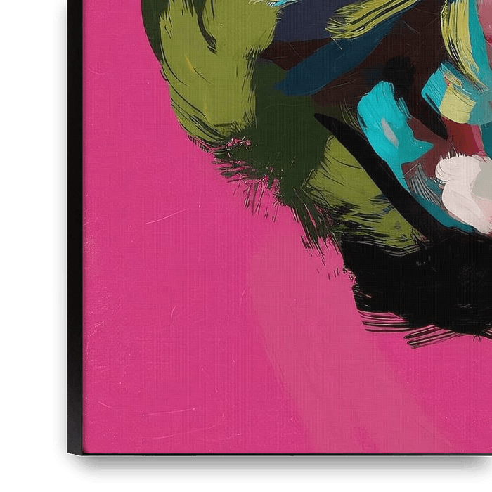 This artwork offers a unique combination of vibrant colours and abstract shapes that captures the attention of any viewer. The portrait of a woman is expressive and powerful, rendered in a striking Pop Art style that fits into modern interiors. The bold brushstrokes and rich colour spectrum create a dynamic atmosphere that can feel both…
