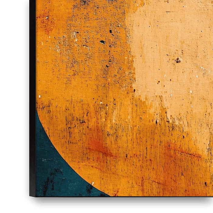 This abstract design with geometric shapes and vibrant colours brings a modern look to any room. With a mix of black, white, yellow, orange and red, it creates a dynamic contrast that stands out without being overpowering. This composition is perfect for people who love art that allows for interpretation and depth. The combination of…