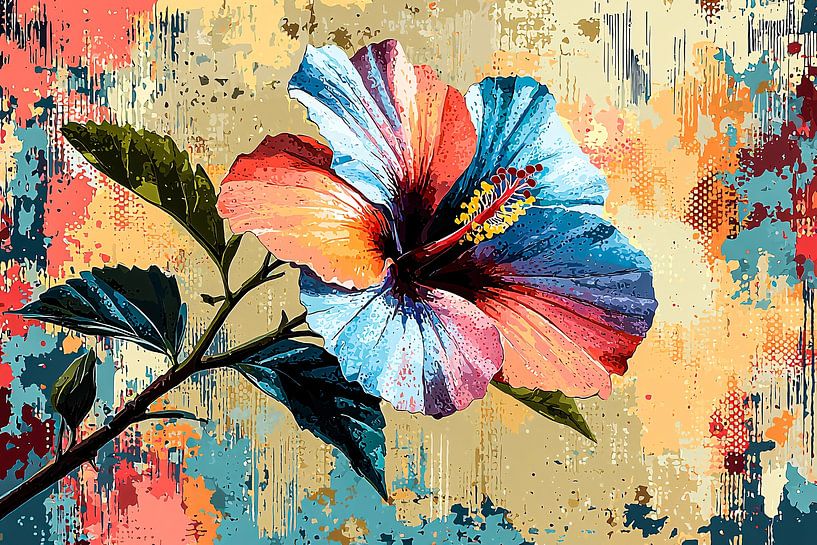 This beautiful wall decoration brings colour and vibrancy to any room. The design combines a colourful hibiscus flower with a dynamic abstract background, creating an impressive visual impact. Perfect for modern interiors or as a striking accent in a quiet room. Ideal for brightening up a living room, dining room or office, this print…