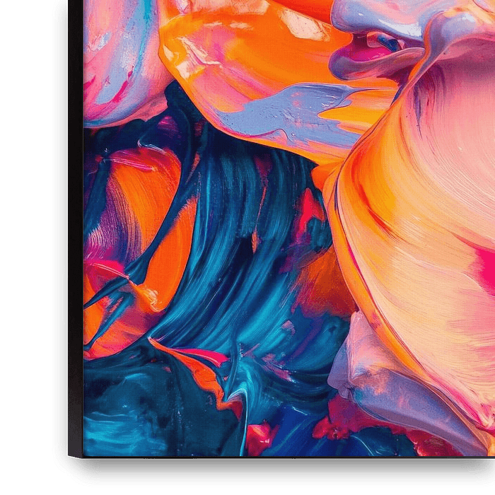 A kaleidoscopic play of colours unfolds in soft, flowing lines reminiscent of creative chaos. Vibrant shades of purple, orange and pink dance harmoniously together to create an inviting, lively atmosphere. Ideal for the living room, it adds a touch of creativity and joie de vivre to the room.