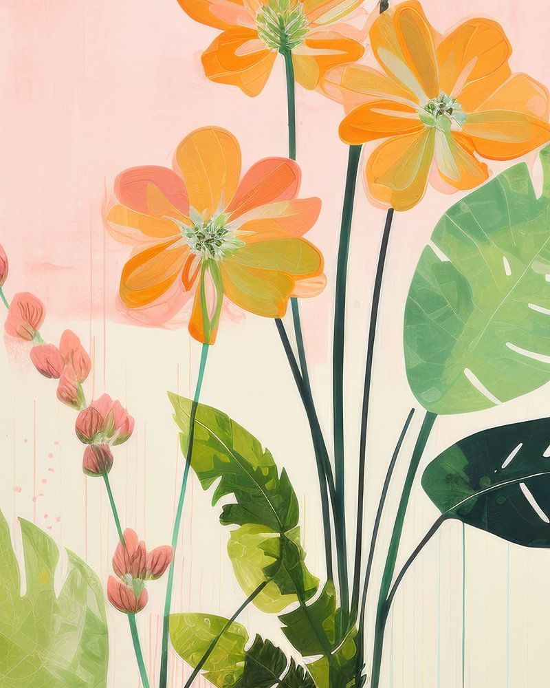 Colourful and cheerful collage with flowers in pastel colours. This work will brighten up your whole interior. Choose the size and material yourself.