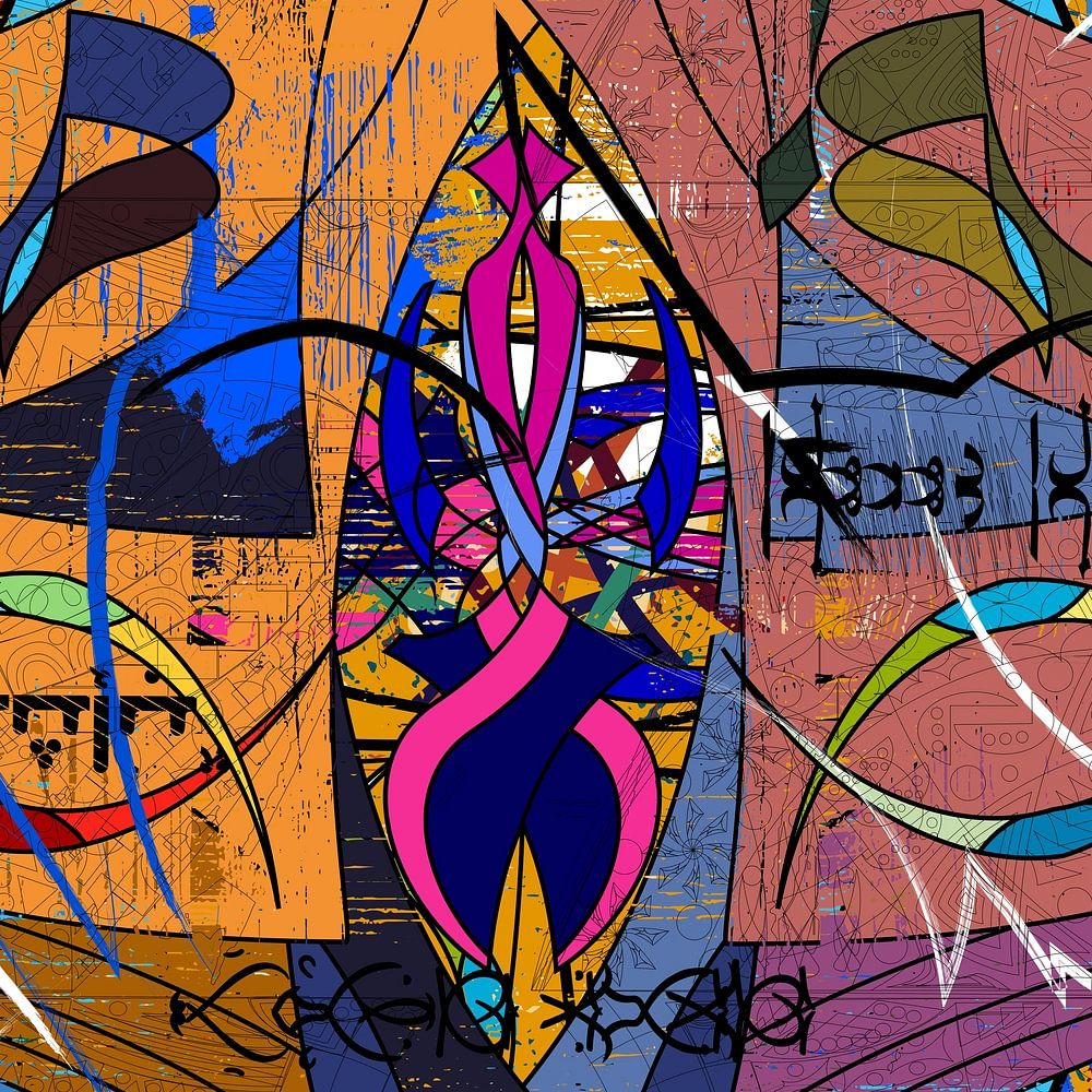 Buy this abstract artwork Colourful and modern work of geometric shapes by EL QOCH on canvas, ArtFrame, poster and wallpaper, printed on demand in high quality.