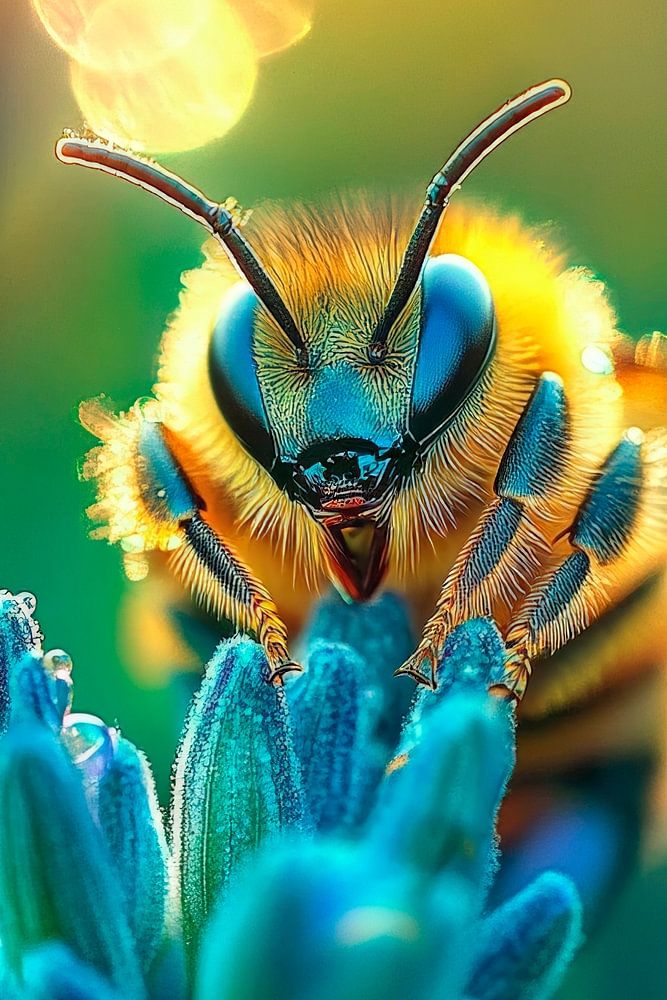 A bee floats delicately on a blooming lavender in a golden ray of light. Its shimmering wings and vibrant colour palette attract everyone's attention. This lively work of art not only brings a sense of nature into any room, but is particularly suitable for a bright kitchen or an inviting living room, where it adds a cheerful accent.