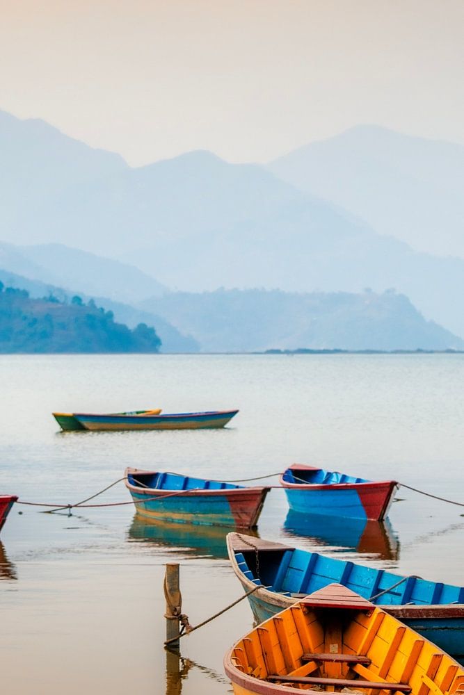 About "Colourful boats in Phewa Lake Pokhara Nepal."