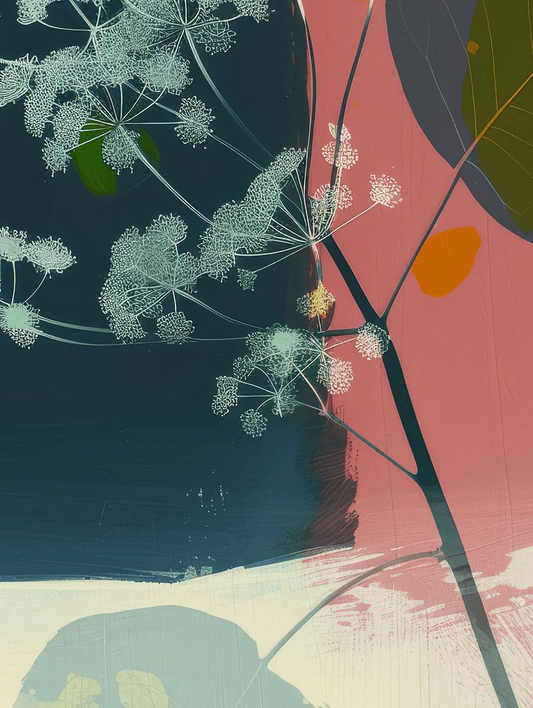 Colourful botanical abstract. A special eye-catcher in neon colours. Choose the format and material yourself and customise this work for your interior.