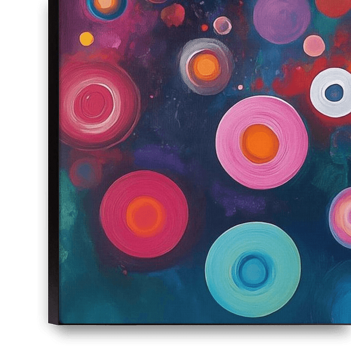 The colourful circles abstract panorama painting is a dynamic and modern artwork that harmoniously brings together playful shapes and vibrant colours. This panoramic photo print is composed of a series of overlapping circles in varying sizes, each with a unique colour and texture. From bright shades of blue to warm oranges, deep reds…