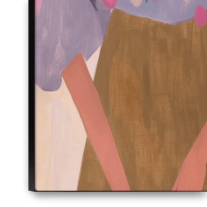 Colourful eclectic portrait in purple, brown, pink and yellow. A special eye-catcher for your interior! Choose the format and material for this work and make it your own.