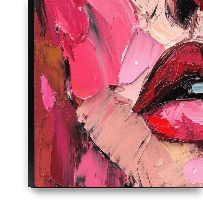 An intense play of colours transforms the face into a fascinating kaleidoscope of emotions. Vibrant pinks and cool blues contrast with deep reds, while rough brushstrokes create a dynamic texture. The passionate expression captures the viewer, as if the painting harbours a secret waiting to be discovered.