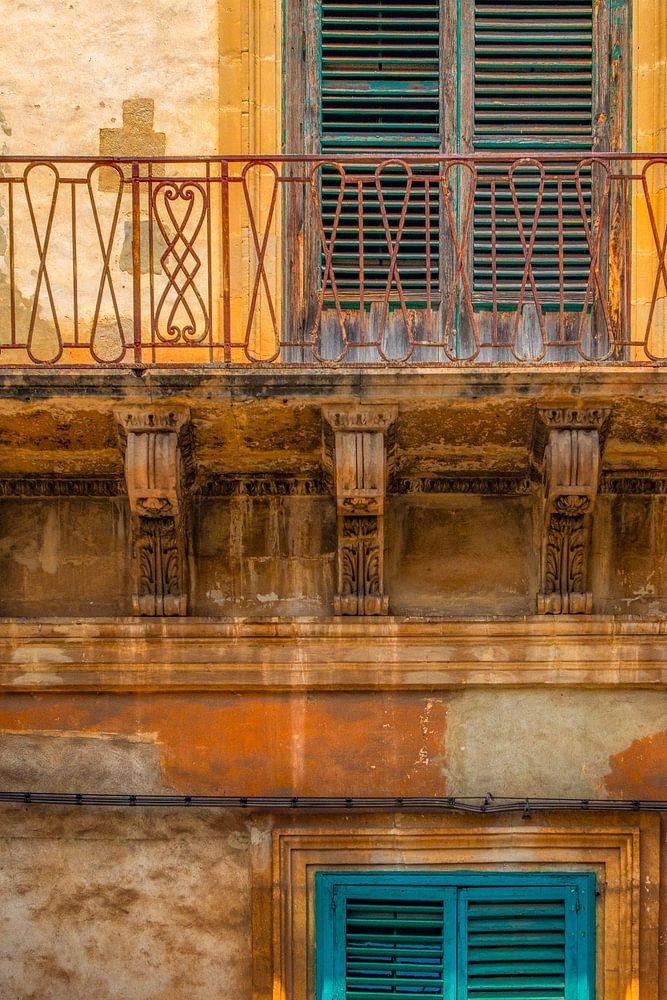 A colourful facade in the centre of Noto the baroque capital of Val di Noto located on the island of Sicily Italy.
