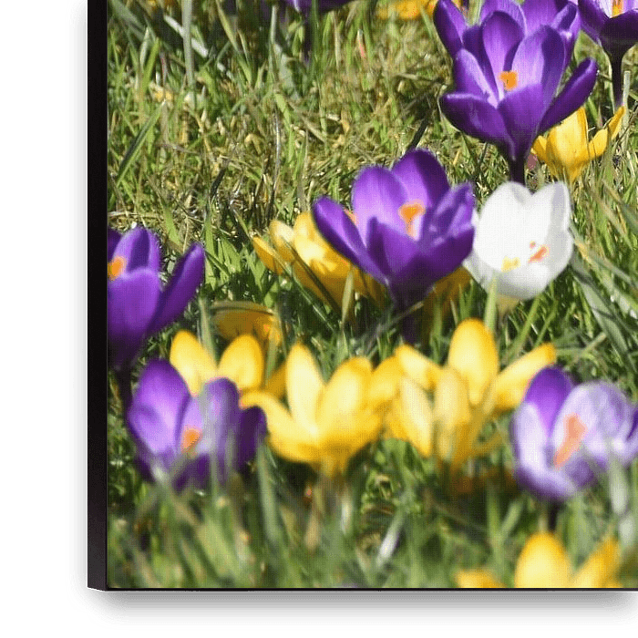 Buy this flower art Colourful flowering crocuses by Esther on canvas, ArtFrame, poster and wallpaper, printed on demand in high quality.