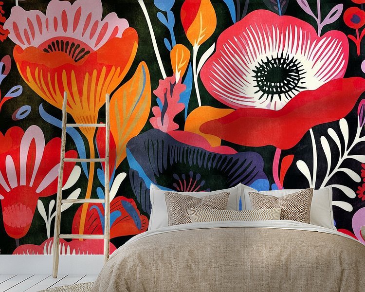 The abstract digital painting the "Colourful flowers VI" gives a modern and colourful look to your interior!