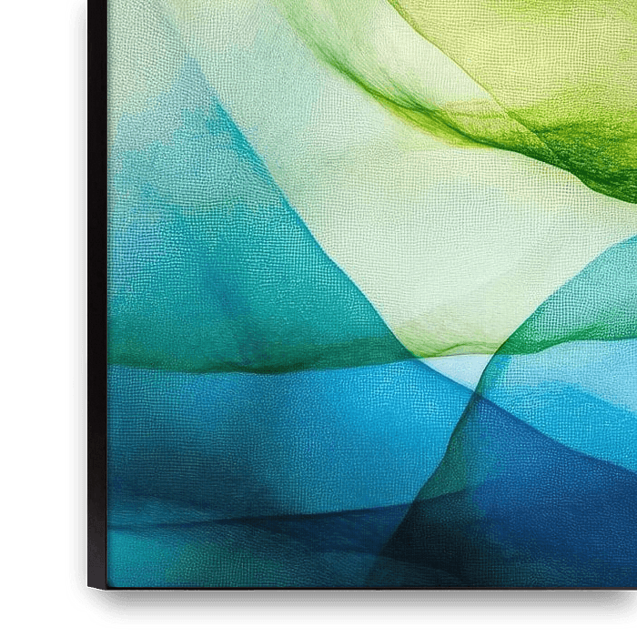 Gentle waves in calming shades of blue and green dance harmoniously across the room and immediately create a relaxing atmosphere. The delicate transparency and flowing movements are reminiscent of water and freedom. Perfect for the living room or a creative corner in the office to bring inspiration and calm to every day.