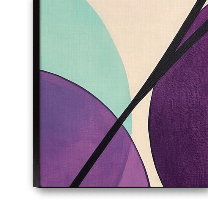 Gentle waves of different shades of purple and turquoise dance across a beige surface and lend the room a harmonious lightness. The dynamic circles and gentle transitions invite creative thoughts and make this piece the perfect wall decoration for an inspiring office or modern living space.