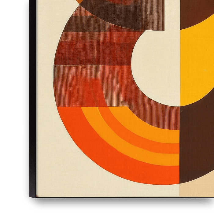 A fascinating composition of curved shapes and clear lines unfolds in a harmonious interplay of warm colour tones. The bright orange and yellow tones seem to merge with the soft texture of the surrounding elements, while the dark brown tones lend depth and structure. A visual feast that stimulates the senses and invites you to marvel.