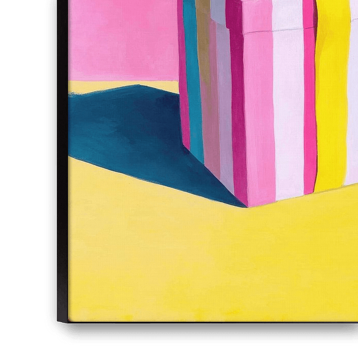 Buy this painting Colourful gift box with yellow ribbon by Niklas Maximilian as a reproduction on canvas, ArtFrame, poster and wallpaper, printed on demand in high quality.