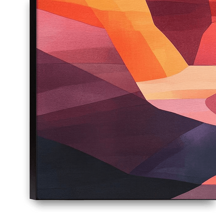Soft, geometric shapes capture the play of light and shadow in a warm, earthy colour palette. The curved line of the river draws the eye deep into the abstract landscape, creating a calming and meditative atmosphere. Ideal for the living room, this work of art invites you to linger and dream.