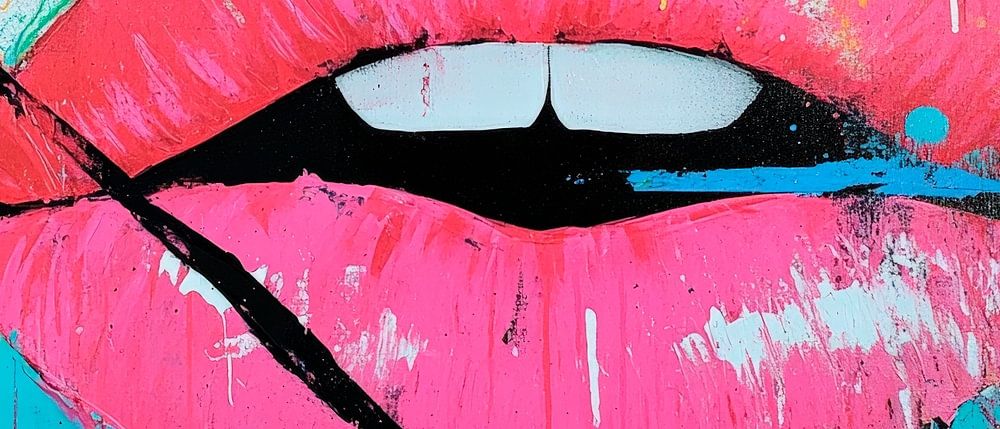 A vibrant interplay of bold colours and artistic accents catches the eye like lip service. The bright pink lips, surrounded by dynamic splashes of colour, add explosive expressiveness to any room. Ideal for the living room, it becomes a talking point and brings creativity to your walls.