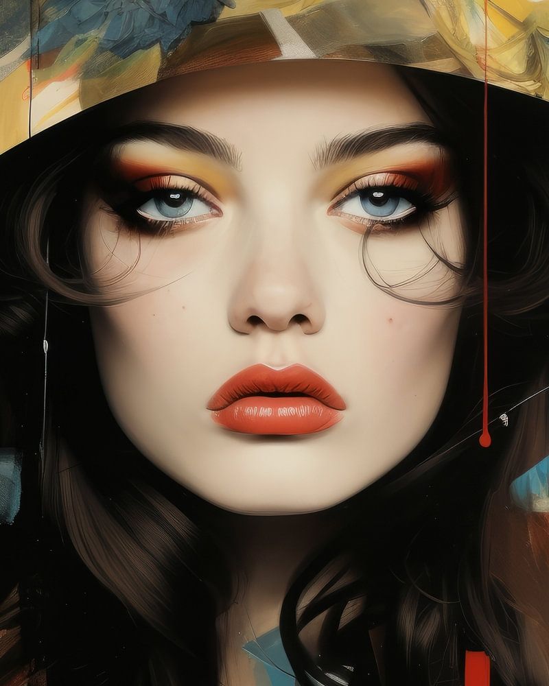 Colourful, modern portrait "Fashion". This work is a real eye-catcher in your interior. Have it printed on the material and in the size you want it to be to your liking.