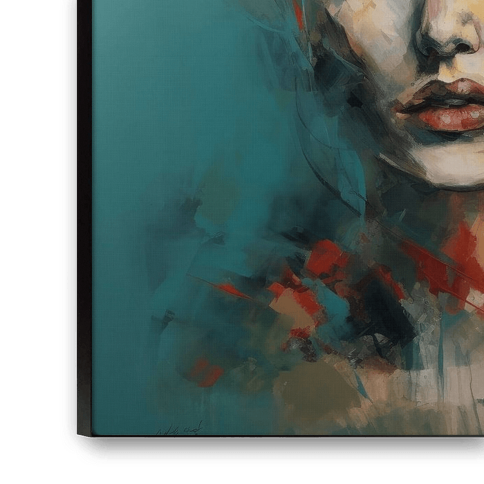 Colourful modern portrait of a young woman with closed eyes. By using warm colours and coarse brushstrokes, this has become a bold yet soft work. Beautiful in any interior!
