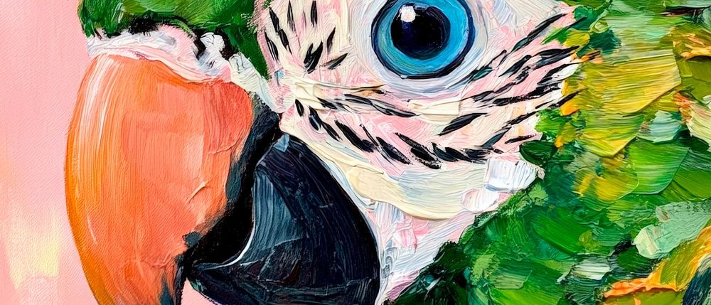 With vibrant shades of green and a bright, inquisitive look, this magnificent parrot attracts everyone's attention. Its cheerful, orange-coloured beak harmonises perfectly with the soft, pastel-coloured background. Ideal for the living room, this work of art adds an exotic touch and vibrant energy to any room.
