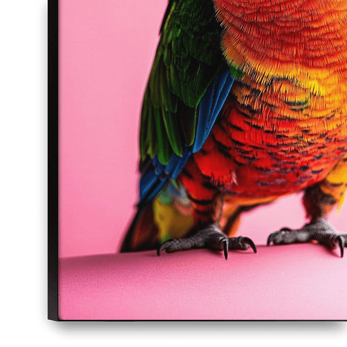 Buy this landscape artwork Colourful parrot against pink background by Imperial Art House on canvas, ArtFrame, poster and wallpaper, printed on demand in high quality.
