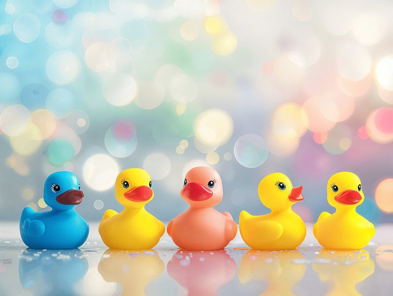Colourful rubber ducks in a row by Andrea Diepeveen-Loot