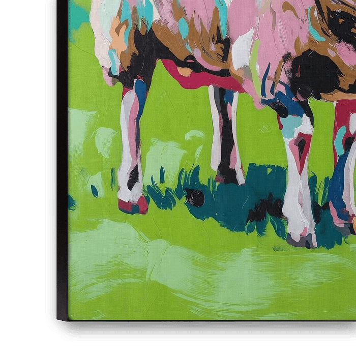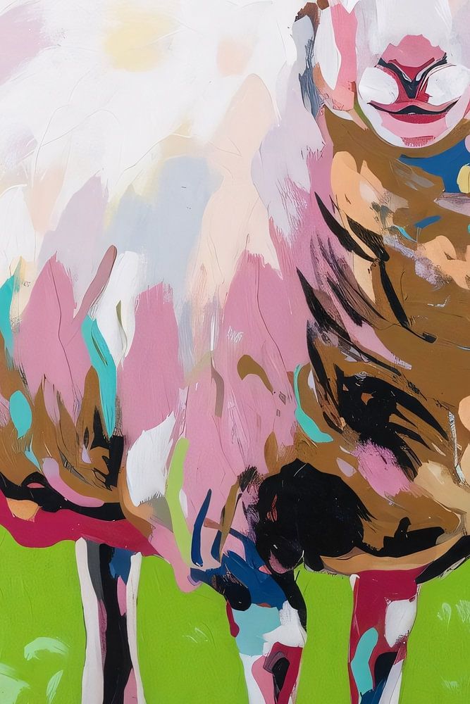 This unique Pop Art painting of a sheep adds a vibrant and playful look to any room. The expressive brush strokes and bright colours give the animal a modern twist that stands out and impresses. Perfect for animal lovers and art collectors who love contemporary style, this colourful image of a sheep brings energy and personality to any room. The use of bright colours such as blue, green and pink makes the piece a real eye-catcher and a source of cheer. Ideal for breathing new life into a dull wall.
