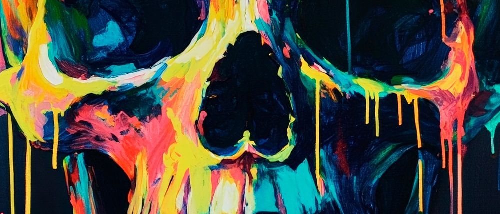 With vibrant colours that contrast intriguingly with the deep black, the radiant skull motif catches everyone's eye. The dripping colours provide a dynamic touch and add a bold touch to any room. Ideal for a modern living room or a creative study where art meets expression.