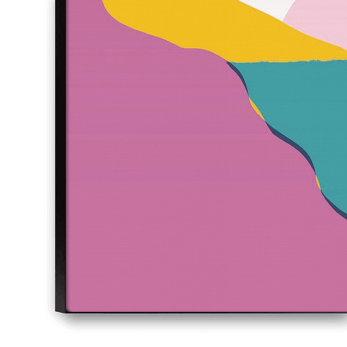 The colours are warm and give it a soft feel. It is reminiscent of a beautiful view of a holiday destination on a summer evening. Do you like minimalist and colourful work? Then this work is perfect to make your interior even more beautiful.