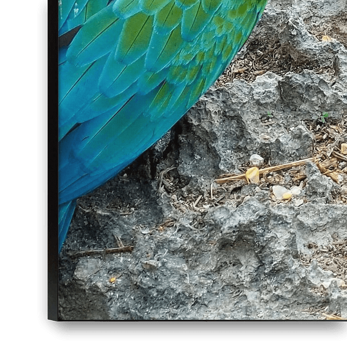 Buy the photo Colourful tropical wildlife - live parrots, peacocks and monkeys in a lush jungle setting. by Miriam Schwarzfischer Fotografie on canvas, ArtFrame, poster and wallpaper, printed on demand in high quality.