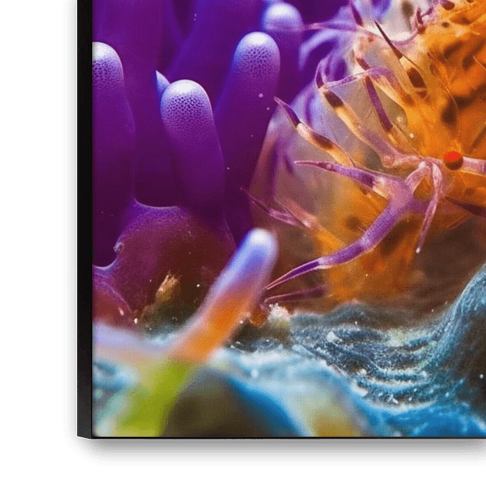 This artwork shows a beautiful creature of the underwater world, where the colourful creature swims among the fire coral. A true inspiration for divers and nature lovers, its love for plantlife, the underwater world and Asia were the inspiration for this artwork. The feeling of peace and freedom experienced while diving and discovering the beauty of the underwater world is what I wanted to convey with this artwork. Through underwater macro photography and artistic photoshop influences, I managed to incorporate the colours and the feeling of depth and movement into the artwork. The result is a beautiful, colourful image that takes you to another world. This work is particularly suitable for nature lovers and divers, but also for people looking for a calming and inspiring environment. It fits perfectly in a living room, a creative studio or even a diving school.