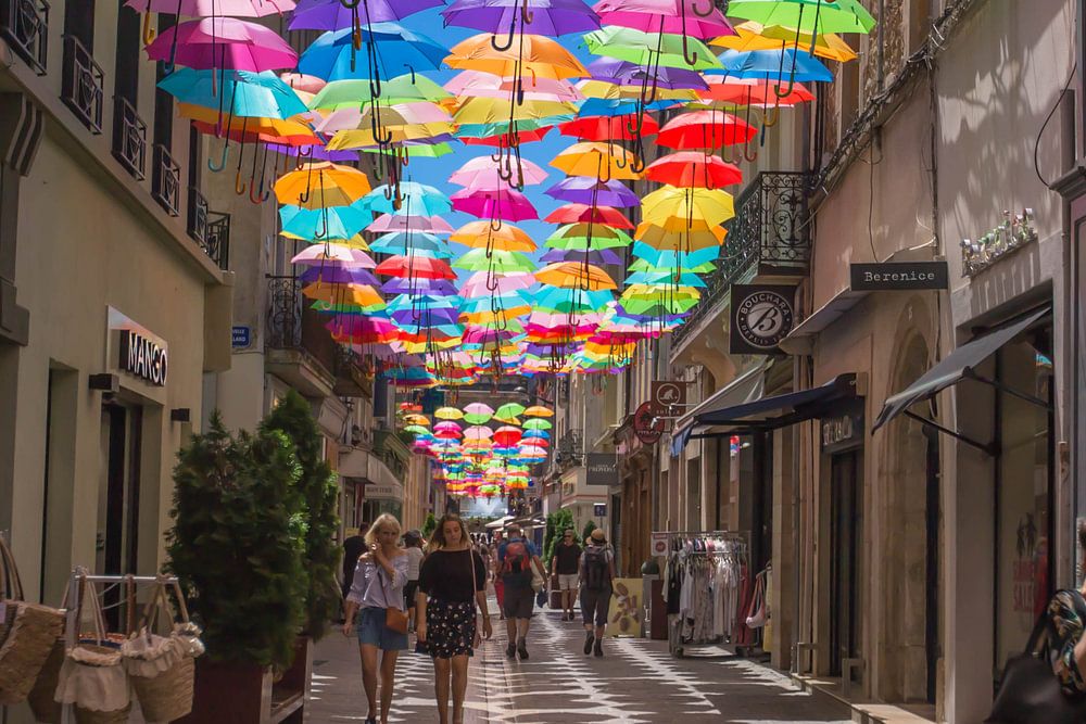 Even the shopping streets of the city are beautifully decorated with colourful umbrellas.