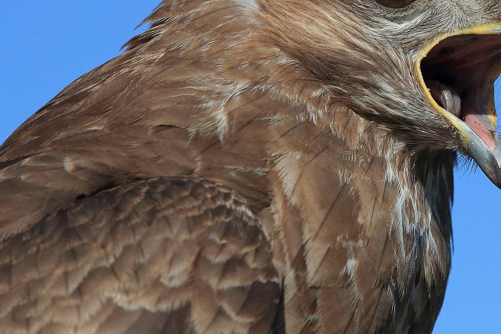 The Common Buzzard is found throughout most of Europe and parts of Asia. It is predominantly a resident bird, wintering in the same area where it breeds, except in the coldest areas and except for a few subspecies. The bird usually hunts in open country, but nests in forest edges. Normally, a Common Buzzard's prey consists mainly of small mammals, amphibians and small birds, but it is also a scavenger on occasion.
