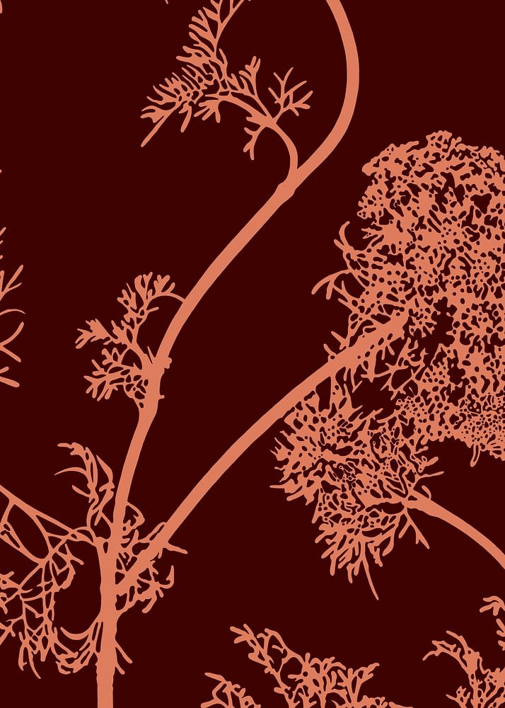 An illustration of a heracleum sibiricum, a common hogweed, with a beautiful silhouette in a light pink color against a dark brown background. The plant is beautiful in its shape, details and delicate appearance, I wanted to show this in this drawing.