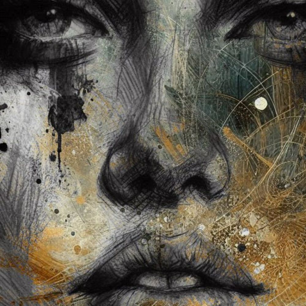 A striking charcoal portrait, set on a vibrant base of earthy tones and subtle gold accents. The artwork exudes strength and toughness and manages to give both modern and classic interiors a unique, timeless atmosphere.